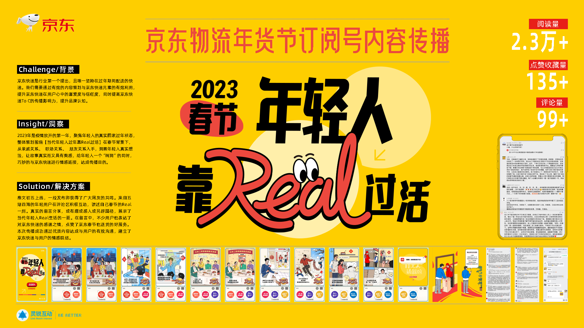 - 2023年(nián)是(shì)疫情放(fàng)開(kāi)的(de)第一(yī)年(nián),聚焦年(nián)輕人(rén)的(de)真實回家(jiā)過年(nián)狀态,整體(tǐ)策劃圍繞【當代年(nián)輕人(rén)過年(nián)靠Real過活】在春節背景下(xià),從(cóng)親戚關系、 職場(chǎng)關系、 朋(péng)友(yǒu)關系入手,洞察年(nián)輕人(rén)真實想法,讓故事(shì)真實而又(yòu)具有(yǒu)爽感,給年(nián)輕人(rén)一(yī)個(gè)“樹(shù)洞”的(de)同時(shí),巧妙的(de)與京東(dōng)快(kuài)遞進行(xíng)情感連接,達成傳播目的(de)。