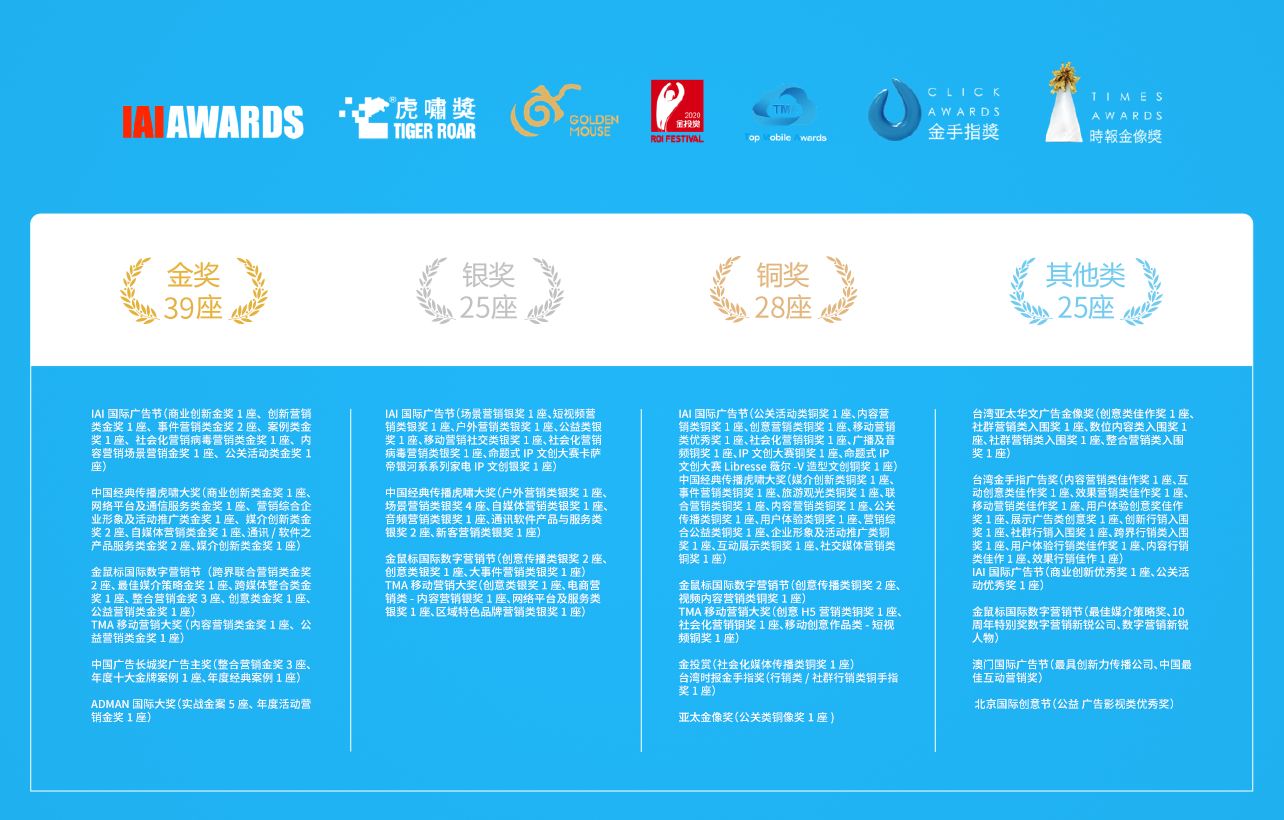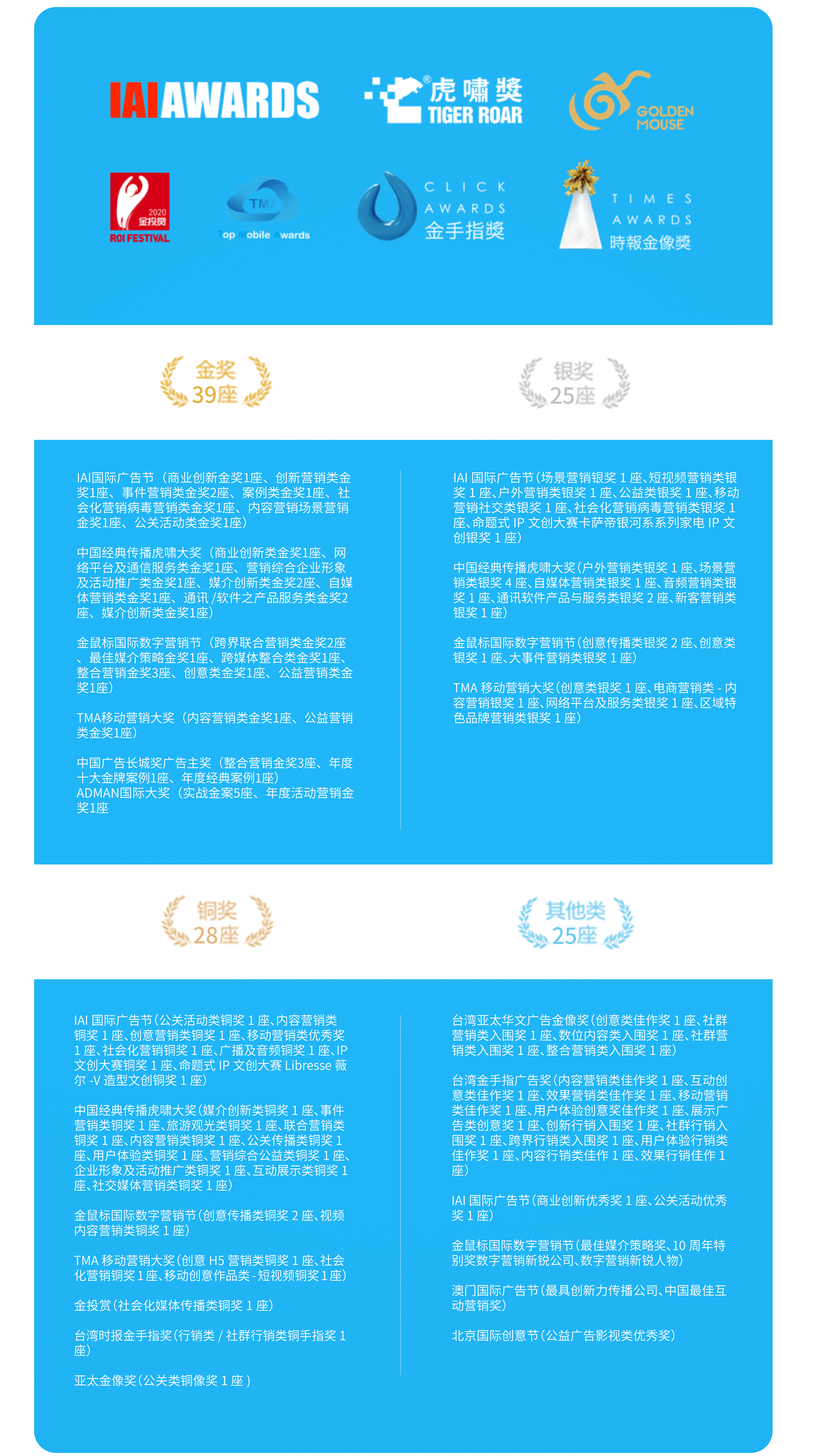 靈銳互動長(cháng)期服務科(kē)技(jì)互聯網、電(diàn)商平台、通(tōng)訊運營商、快(kuài)消品及新零售品牌,以自(zì)身(shēn)方法論→專注解決2B、2C端客戶的(de)不(bù)同需求,不(bù)斷與客戶共同産出行(xíng)業(yè)級案例。2016年(nián)至今,靈銳團隊7次斬獲金(jīn)鼠标數÷(shù)字營銷獎、TMA移動營銷大(dà)獎、IAI國(guó)際廣告獎及虎嘯獎的(de)全場(chǎng)大(dà)獎,共赢得(de)117座在兩₹岸三地(dì)極具影(yǐng)響力的(de)行(xíng)業(yè)獎項并榮膺“數(shù)字營銷新銳公司”和(hé)“最具創新力傳播公司”等稱号。同時(±shí)我們還(hái)獲得(de)“國(guó)際奧林(lín)匹克博覽會(huì)”的(de)認可(k☆ě),是(shì)其品牌傳播的(de)合作(zuò)夥伴。